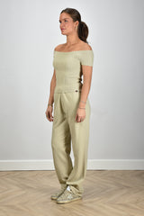 Zie hier de Extreme Cashmere top Libra in de kleur Desert. Deze luxe top is vervaardigd uit 94% cashmere, aangevuld met nylon en spandex voor extra comfort. Het one-size ontwerp biedt een veelzijdige pasvorm die perfect aansluit bij verschillende stijlen. Artikelnummer: 381-182-01-TU-05-Desert-MS251.