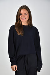 Zie hier de Extreme Cashmere trui Mister navy, een verfijnd kledingstuk van 88% cashmere. Deze trui biedt een normale pasvorm en is ideaal voor diverse gelegenheden. Lise draagt maat M bij haar lengte van 1,73m. Wasbaar op wolprogramma tot 30°. Artikelnummer: 358-001-01-TU-01-Navy.