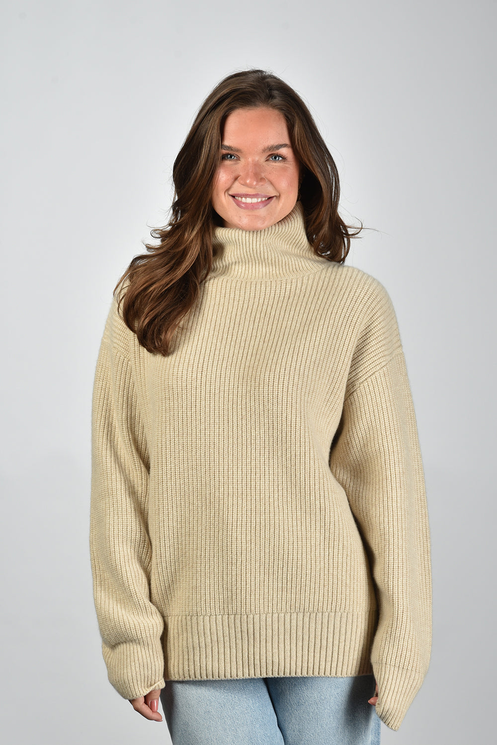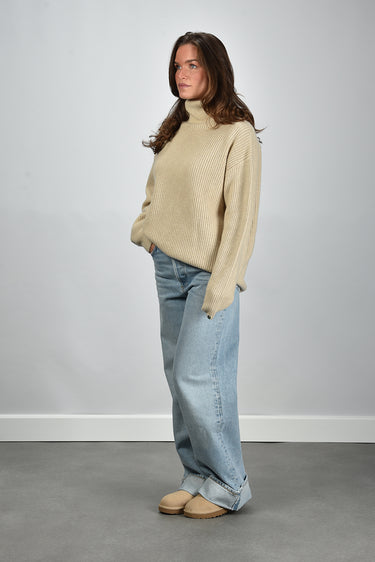 Extreme Cashmere trui Nisse 317 met hoge kraag latte