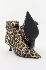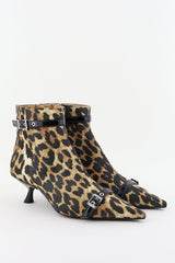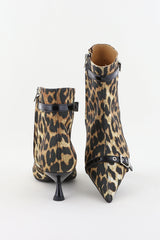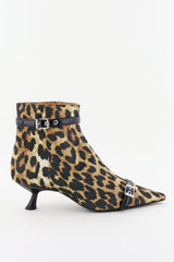 Zie hier de Ganni enkellaarsjes dierenprint, een verfijnde keuze voor elke garderobe. Deze laarsjes combineren textiel en lakleer met een hakhoogte van 5 cm voor elegantie en comfort. De pasvorm is normaal, ideaal voor dagelijks gebruik. Artikelnummer: S2883-943-Leopard