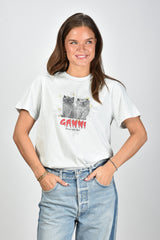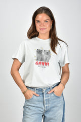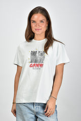 Ganni t-shirt met katten blauw