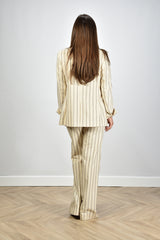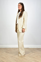 Deze blazer van Golden Goose is voor dames. De kleur van de blazer is een combinatie van lichtbruin (lambs wool) en donkerbruin (coffee iron), wat zorgt voor een mooi contrast. De blazer heeft een enkele rij knopen aan de voorkant en is voorzien van twee opgestikte zakken aan de zijkanten. Aan de achterkant van de blazer bevindt zich een split voor meer bewegingsvrijheid. De mouwen hebben een enkele knoopsluiting en zijn gevoerd voor extra comfort. De blazer heeft een tijdloze uitstraling en is geschikt voor verschillende gelegenheden, zoals zakelijke bijeenkomsten of informele gelegenheden. Ons model is 1,73 m, heeft maat 38 en draagt maat 38.