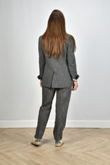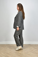 Hoe gaaf is deze broek van Golden Goose? Deze broek, model GWP01504.P001355.81242 in de kleur grey/ white, is onderdeel van een driedelige set. Draag deze broek met de bijbehorende blazer en gilet of met een toffe sweater voor een meer casual look. Stijl de look af met je favoriete paar sneakers van Golden Goose. Deze broek heeft een normale pasvorm. Model is 1,75m, is maat M en draagt maat IT42 (M).