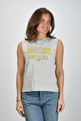 Golden Goose grijs met gele opdruk t-shirt met afgeknipte mouwen