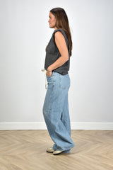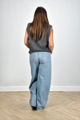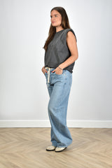 Stoere top van Golden Goose, model GWP01449.P001446.60318 in het anthracite, of wel grijs. De top is voorzien van schoudervullingen en studs. Deze top is geschikt voor alle gelegenheden: combineer hem met een jeans voor een casual look of met een mooie pantalon en blazer voor een meer formele look. Deze top heeft een normale pasvorm. Model is 1,73m, is maat M en draagt maat IT42 (M).