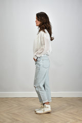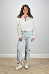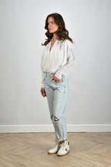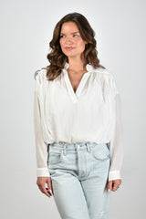 Greek Archaic Kori blouse met v-hals en lange mouwen wit
