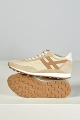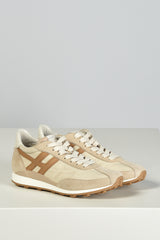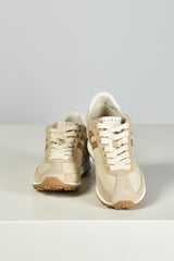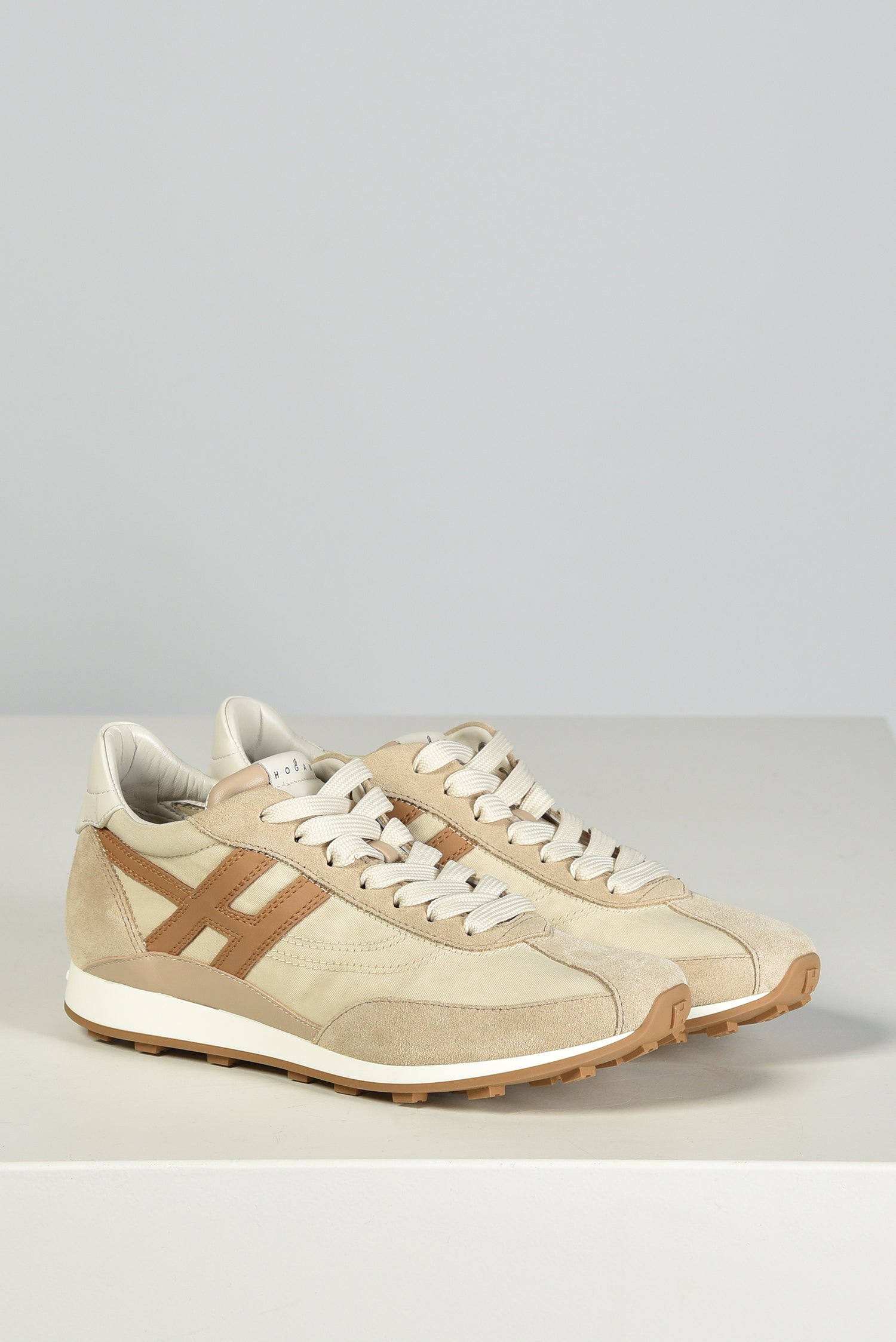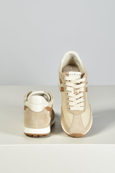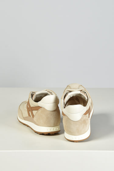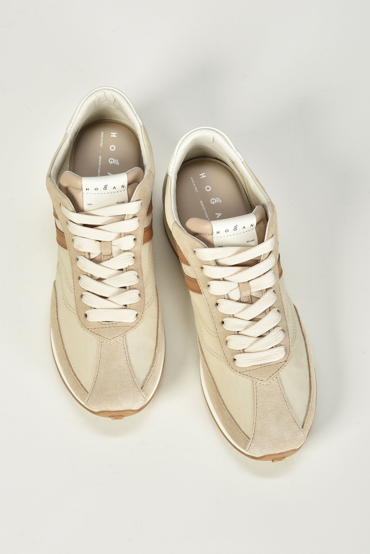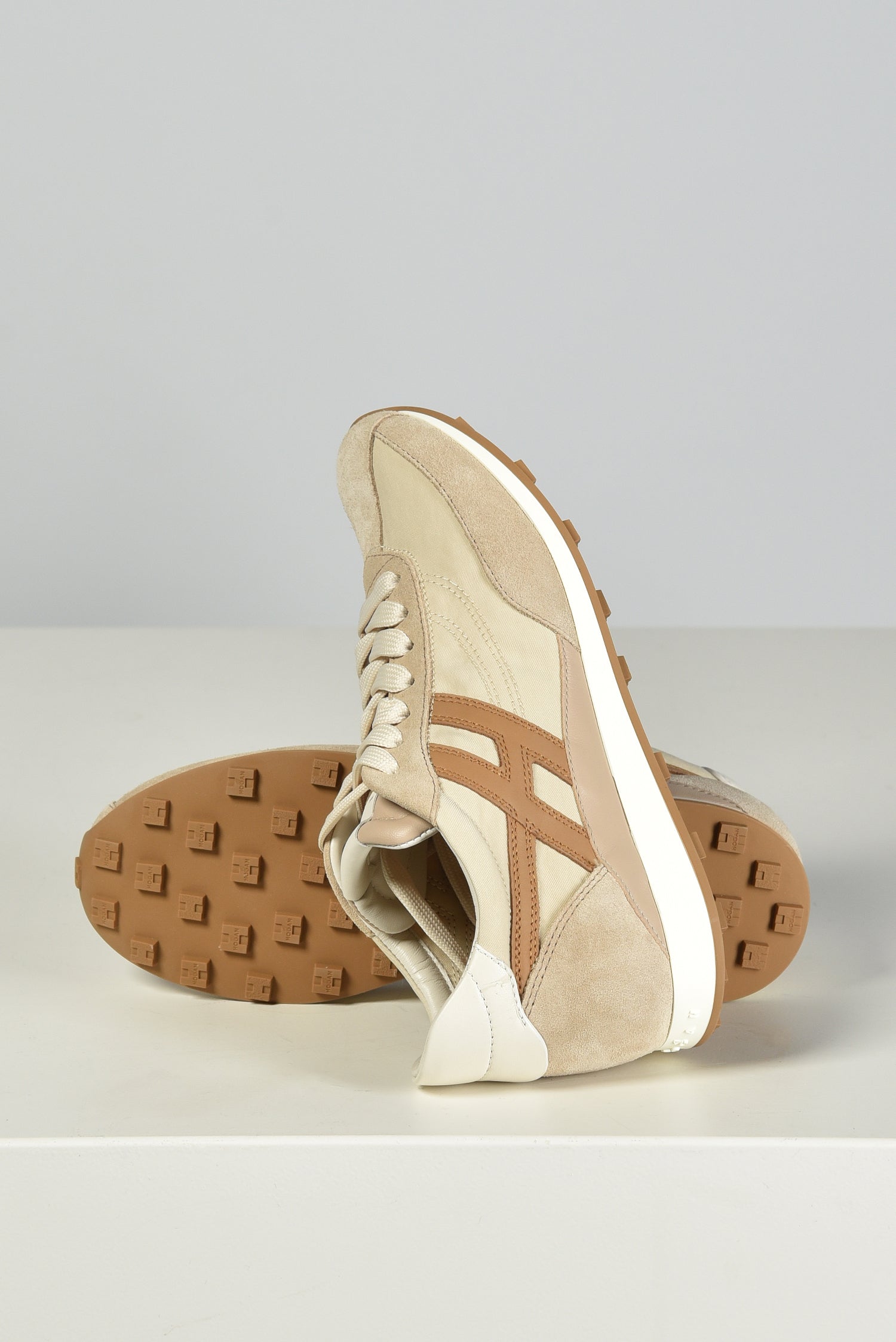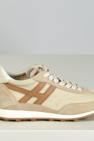 De leren sneakers H699 beige van Hogan hebben die herkenbare Italiaanse balans tussen luxe en sportiviteit. Het zachte suède en glad leer geven de schoen een rijke structuur, terwijl de licht afgeronde neus zorgt voor een moderne vorm. Op de zijkant loopt de kenmerkende H in een iets donkerdere tint, subtiel maar aanwezig. De lichte, contrasterende zool houdt het geheel fris. Deze sneaker valt één maat groter, dus een maatje kleiner voelt vaak beter aan. Combineer de beige H699 bijvoorbeeld met de Hogan sneakers H699 HXW6990GA20V590FEG wit voor een afwisselend accent in je garderobe. Ken je Hogan al langer, dan herken je direct het vakmanschap en comfort waarmee dit Italiaanse label al sinds 1986 vernieuwt binnen de wereld van luxe sneakers.