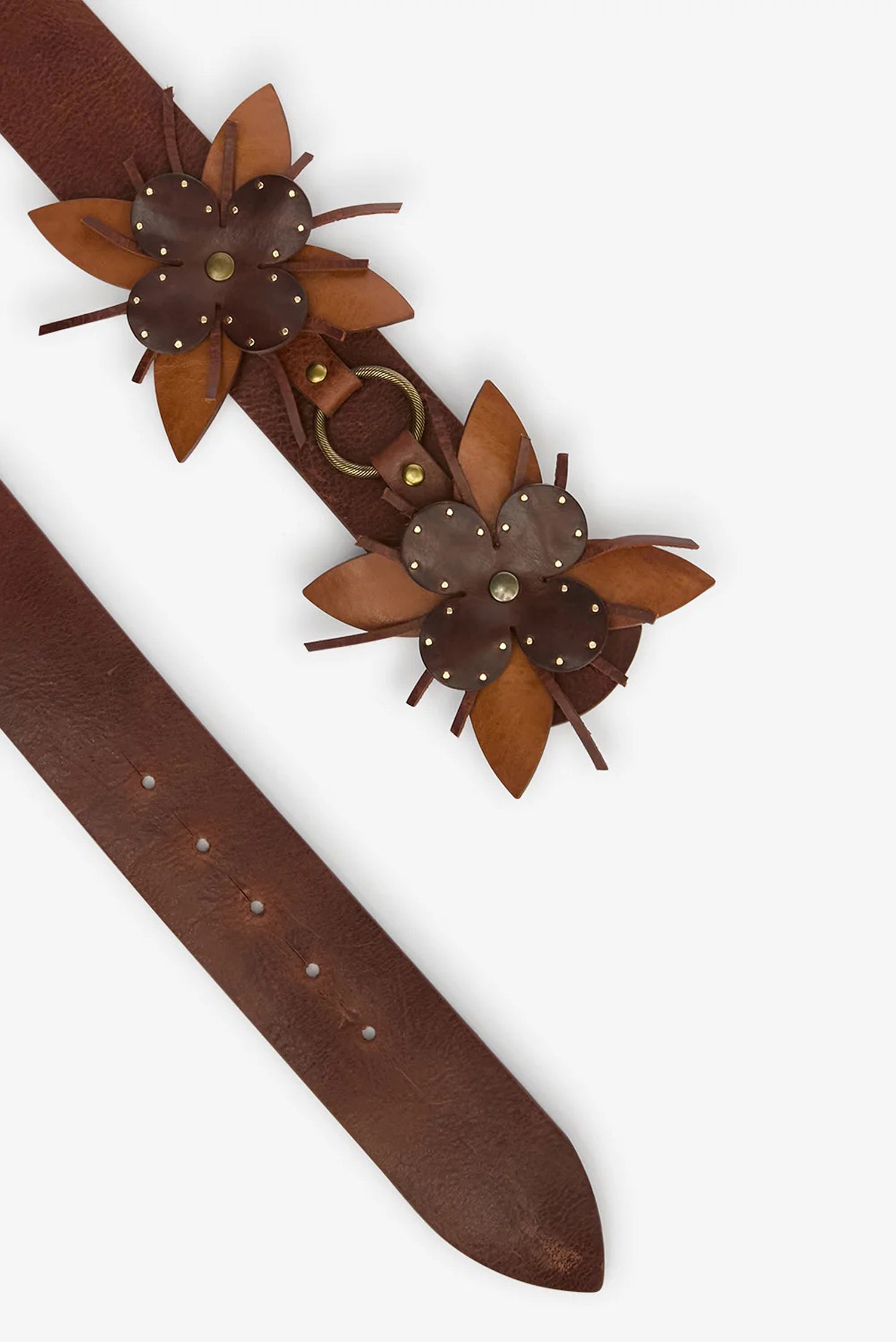 De goudkleurige riem Aska brown van Isabel Marant is een opvallend accessoire met karakter. Het brede rundleer voelt stevig aan en vormt zich mooi naar de taille. De verhoogde bloemendetails en kleine studs geven het ontwerp een speels reliëf, terwijl de gegraveerde metalen ringen subtiel glanzen als je loopt. De goudkleurige details zorgen voor een rijke, maar ingetogen glans. Met de verstelbare drukknoopsluiting pas je de riem eenvoudig aan. Draag de Aska brown met een jurk of over een blazer voor dat typische Isabel Marant gevoel, stoer en vrouwelijk tegelijk.