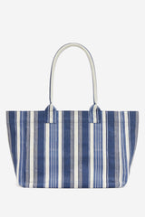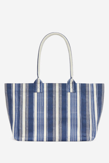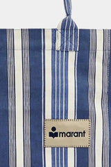 De shopper Yenky Zipped blue van Isabel Marant is een stoere en lichte tas van 100 procent katoen met een gestreept blauw wit dessin. De tas heeft brede schouderbanden die prettig dragen en een ritssluiting die alles netjes afsluit. Aan de voorkant staat het contrasterend geborduurde Marant logo, een subtiele knipoog naar de Parijse stijl van het merk. De stof voelt stevig aan en behoudt mooi zijn vorm, ook bij dagelijks gebruik. Isabel Marant staat bekend om haar combinatie van nonchalante elegantie en bohemian invloeden, wat in deze shopper duidelijk naar voren komt. Mooi te combineren met de zwarte variant van hetzelfde model voor een opvallende set binnen eenzelfde stijl.