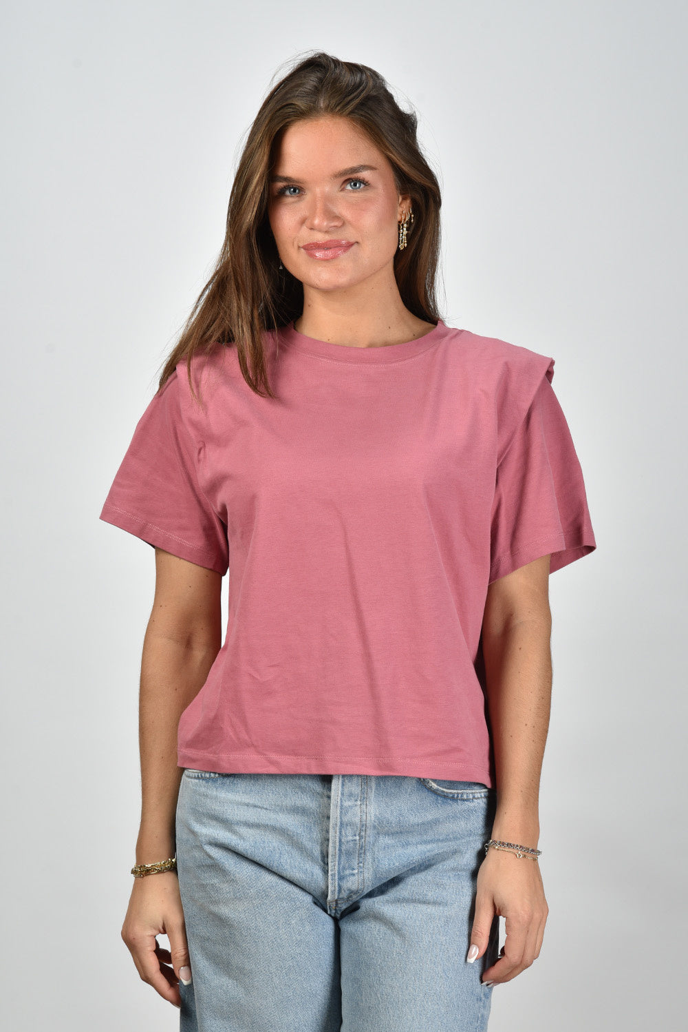 Isabel Marant t-shirt met schoudervulling Zelitos TS0041FA-A1N41I antik pink
