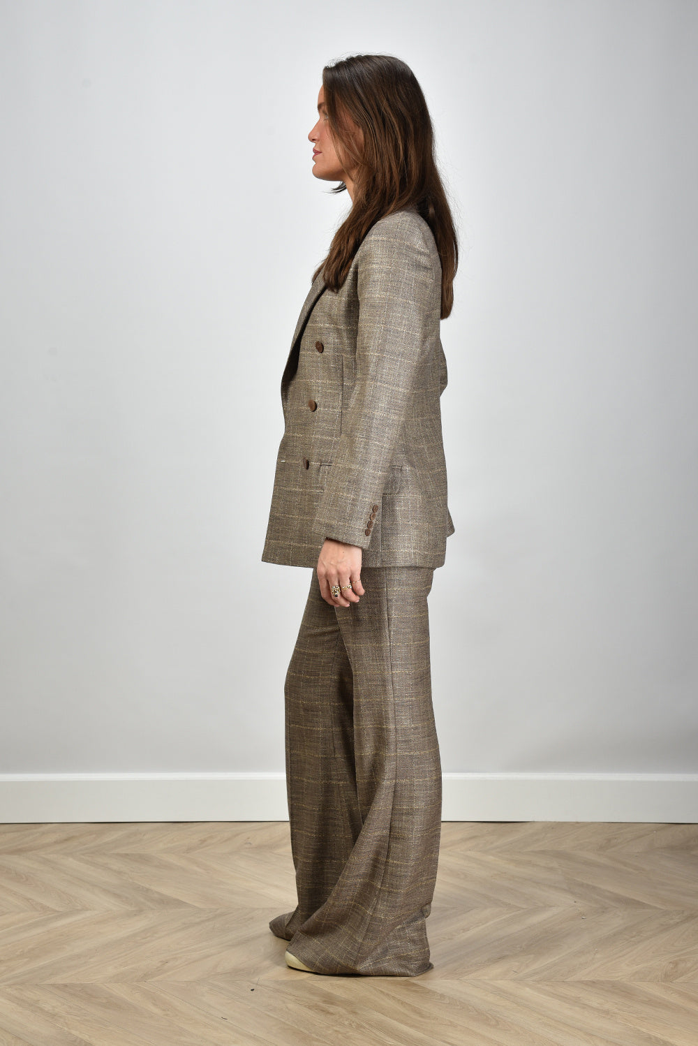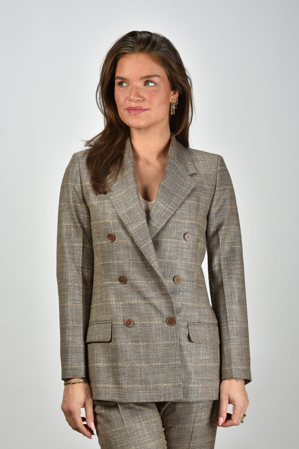 Joseph blazer Castel double breasted met ruitje bruin