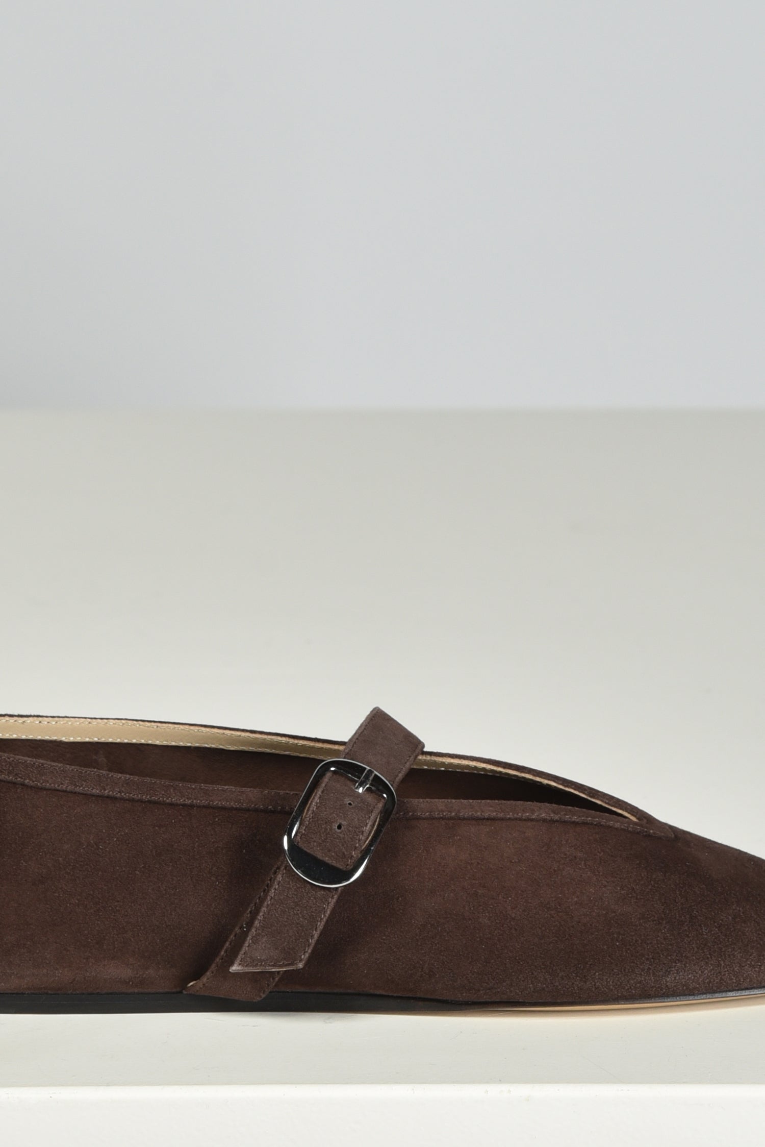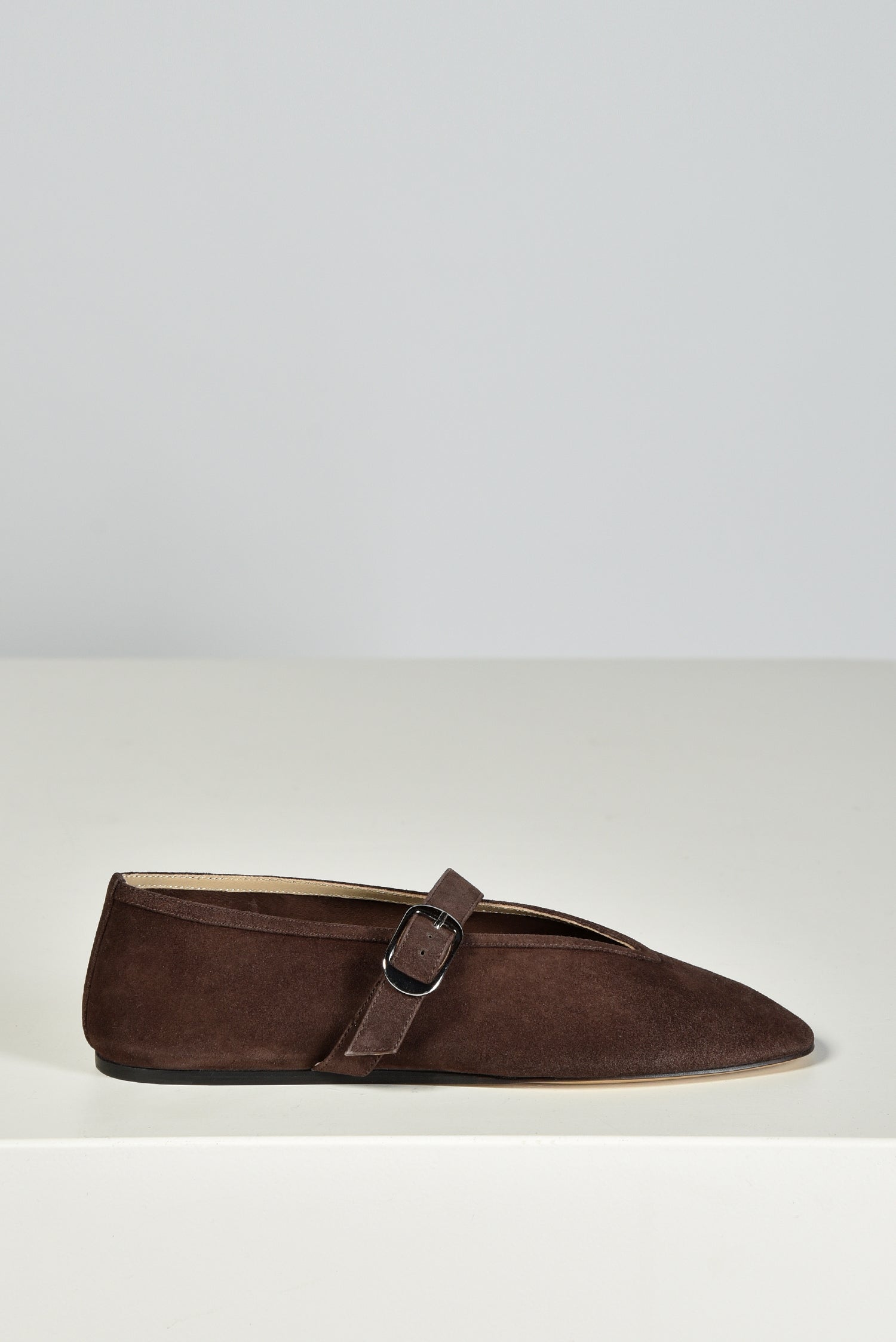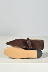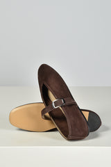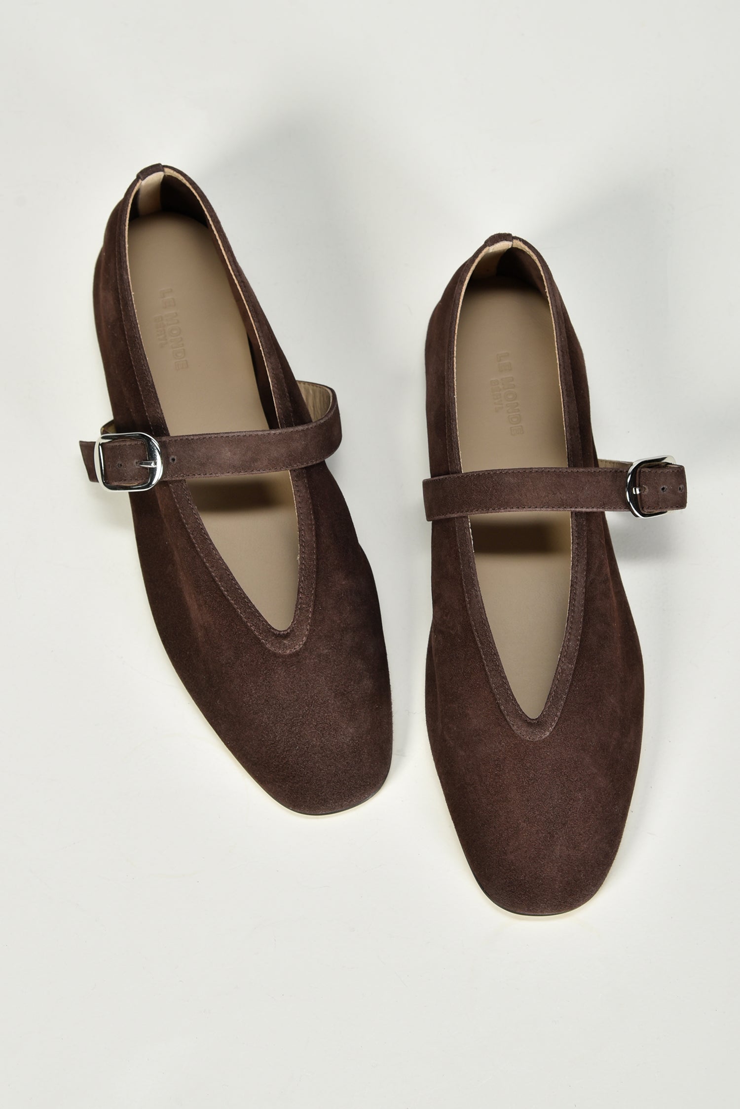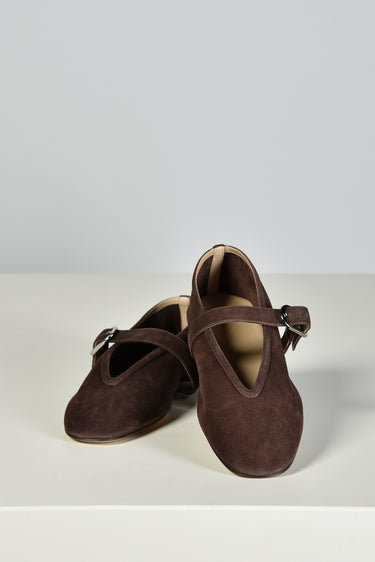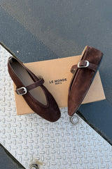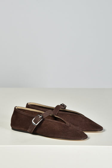 De ballerinas Stella van Le Monde Beryl brengen elegantie in een zachte suède uitvoering. De diepe chocoladetint geeft een rijke, warme uitstraling. De zilverkleurige gesp over de wreef voegt een subtiel accent toe aan de slanke, puntige neus. Elk paar is met de hand gemaakt in Italië, waar traditionele technieken zorgen voor een zorgvuldige afwerking. De ballerina’s vallen normaal op maat en voelen direct prettig aan. Combineer ze met de Stella ballerinas in taupe voor een stijlvolle afwisseling binnen hetzelfde silhouet.