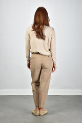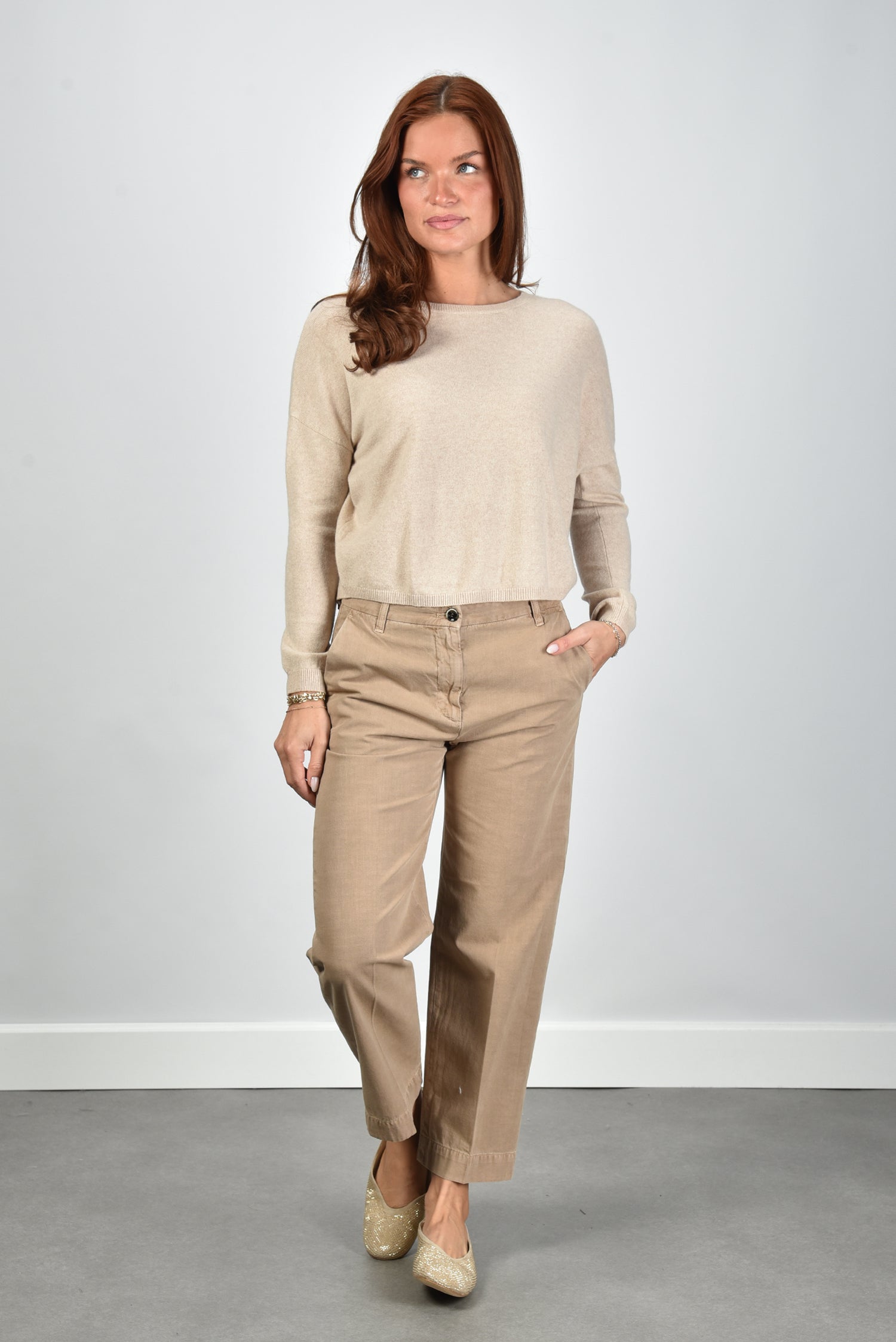 De trui Monroe in beige van Les Tricots de Léa is zo’n stuk dat meteen goed voelt. De cropped pasvorm valt net boven de taille en geeft een moderne lijn. De ronde hals en smalle boorden zorgen voor een nette afwerking. Gemaakt van 100% cashmere, waardoor hij licht en zacht aanvoelt op de huid. De beige chine kleur is rustig en combineert gemakkelijk met natuurlijke tinten. Leuk te dragen op de broek Lavinia van Nine In The Morning voor een ontspannen, maar verzorgde look. Deze trui valt normaal op maat, dus je kunt gerust je eigen maat kiezen.