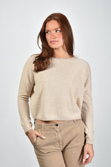 Les Tricots de Lea cropped trui Monroe met ronde hals beige