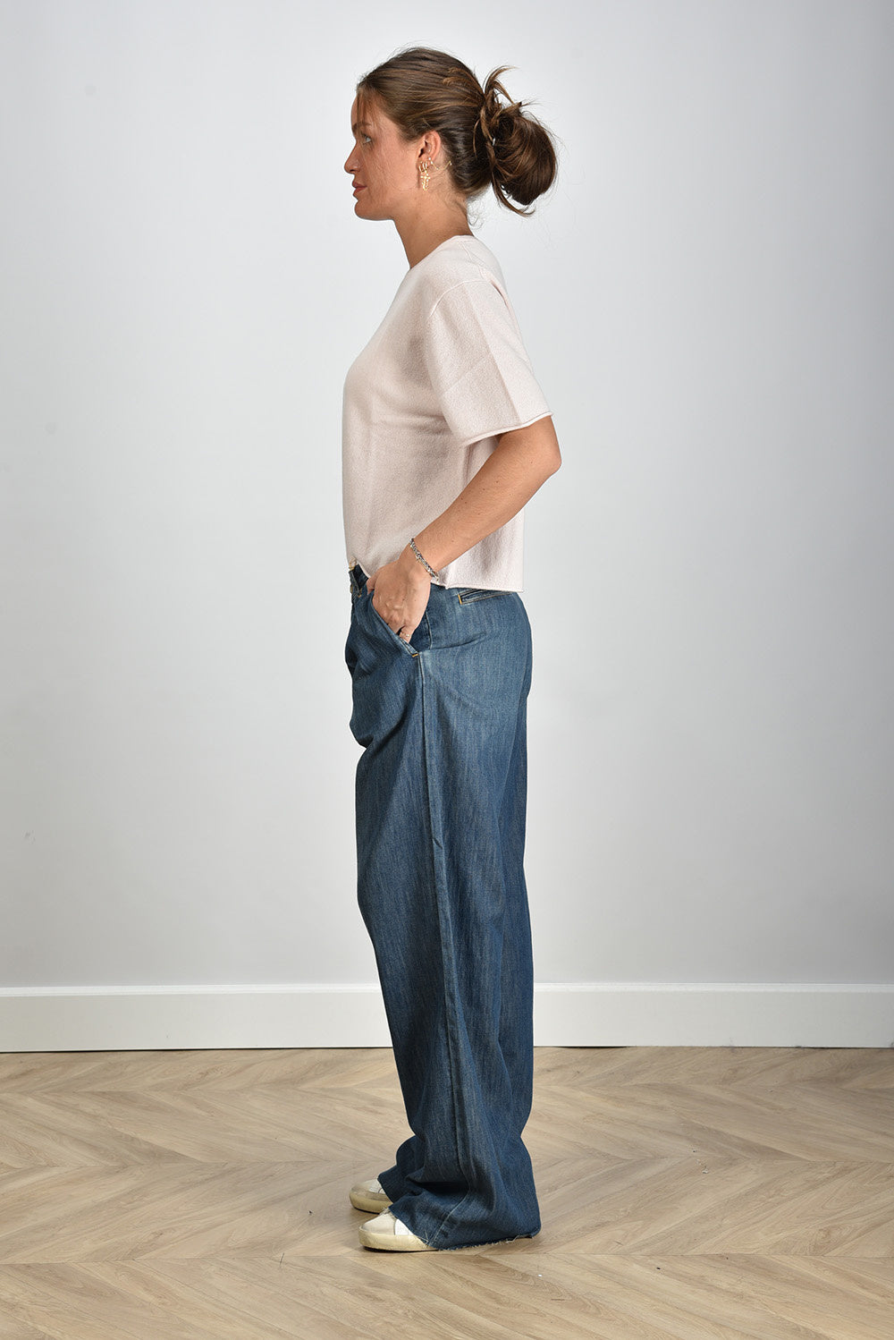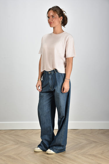Lisa Yang cropped trui Cila met korte mouwen roze