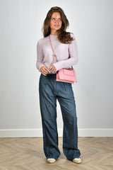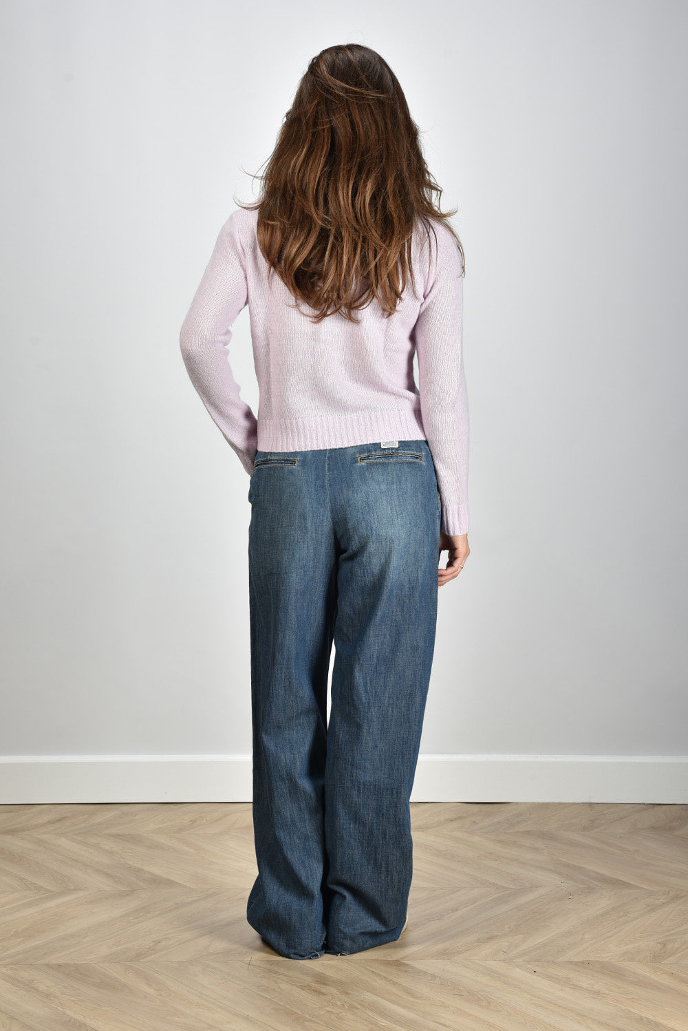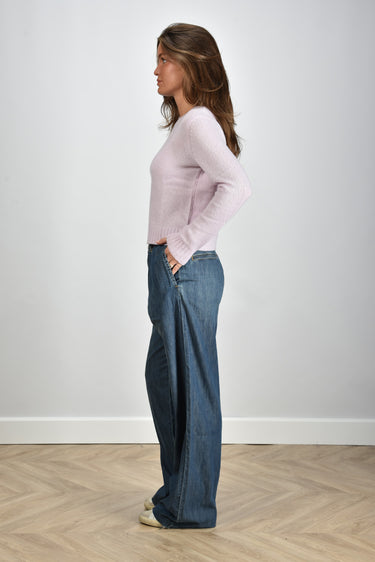 Zie hier de Lisa Yang trui Mira in Dahlia, een verfijnde combinatie van 77% cashmere en 23% zijde. Dit luxe kledingstuk biedt een normale pasvorm voor optimaal comfort. Lise draagt maat M en is 1,73m lang. Handwas aanbevolen om de kwaliteit te behouden. Artikelnummer: 2024070-DL-Dahlia.