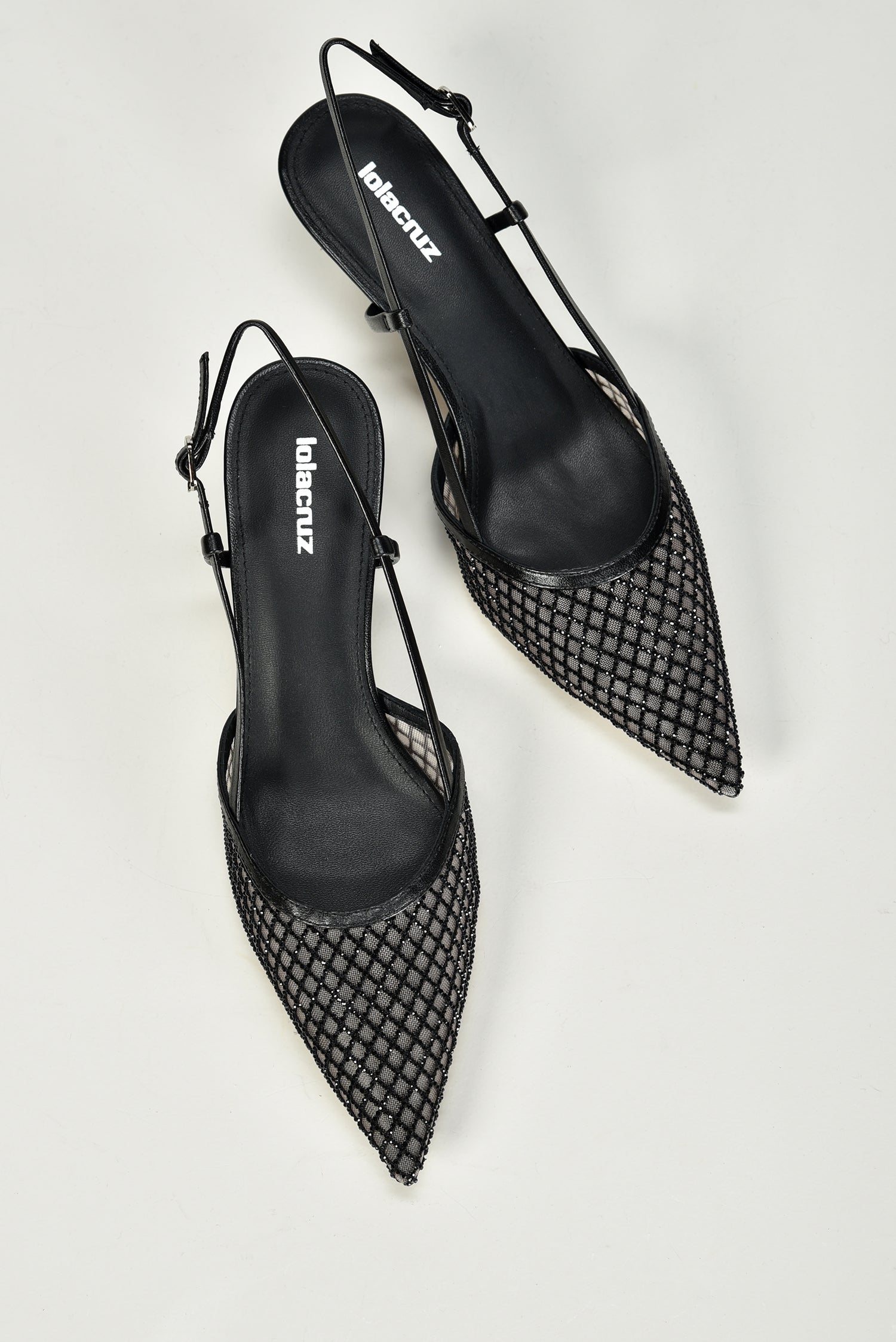 Lola Cruz sandalen met mesh en strassteentjes zwart