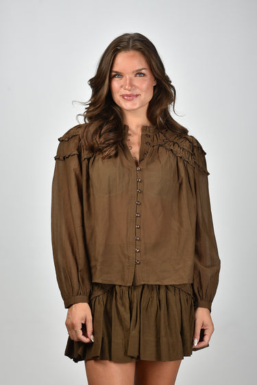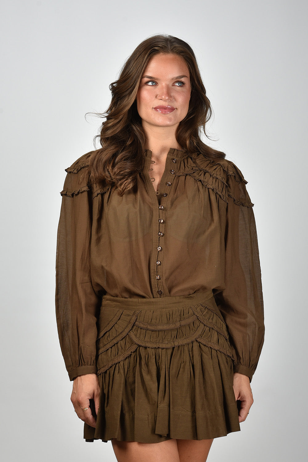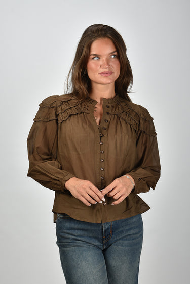 Isabel Marant blouse Christa licht doorschijnend dark khaki
