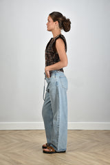 Ons model Lise is 1,73m en Lise heeft maat 38/M/28. Dit product heeft een normale pasvorm.