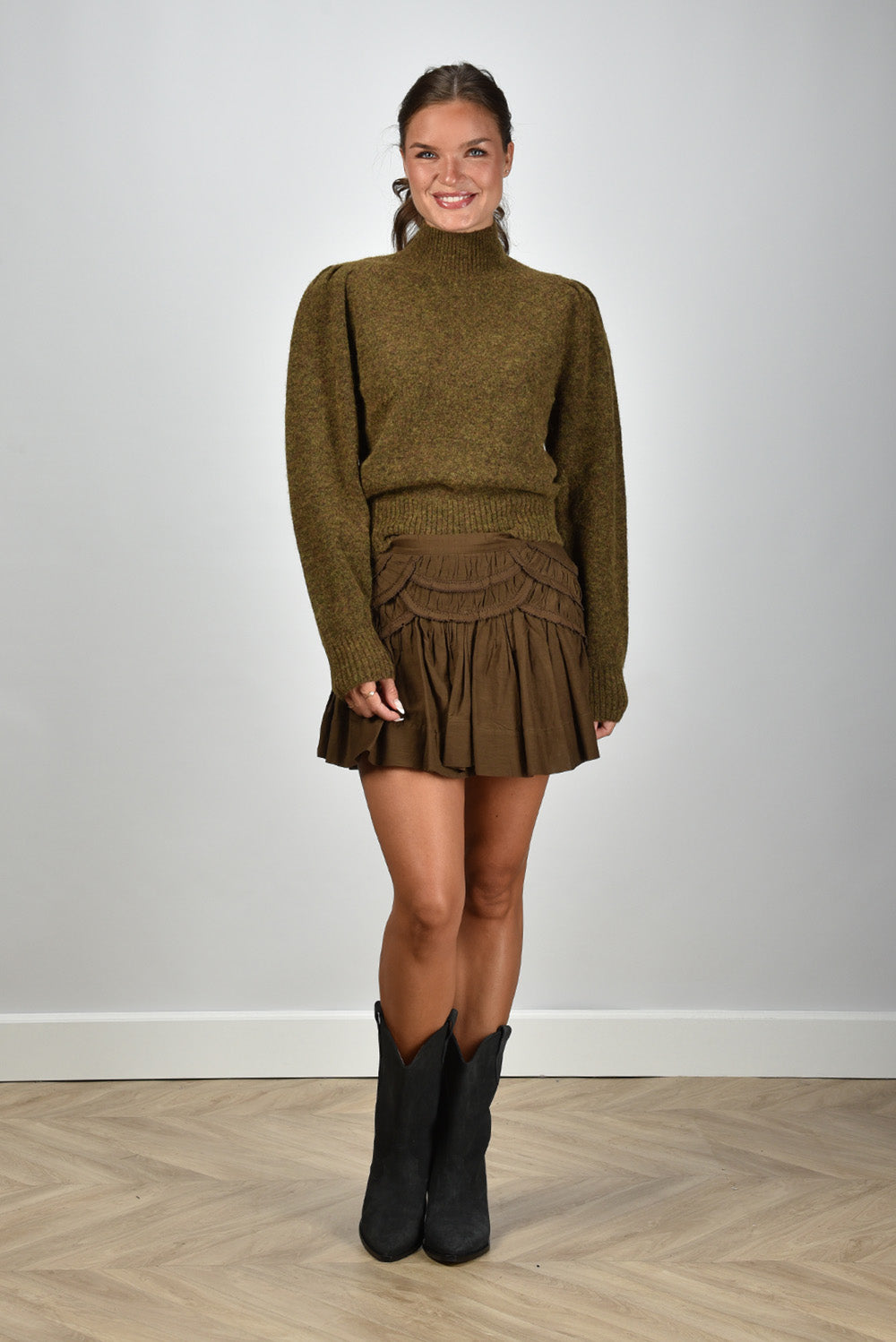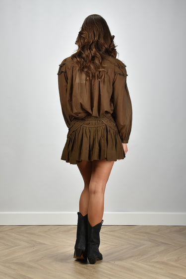 Isabel Marant rok Ceola gerimpelde afwerking dark khaki