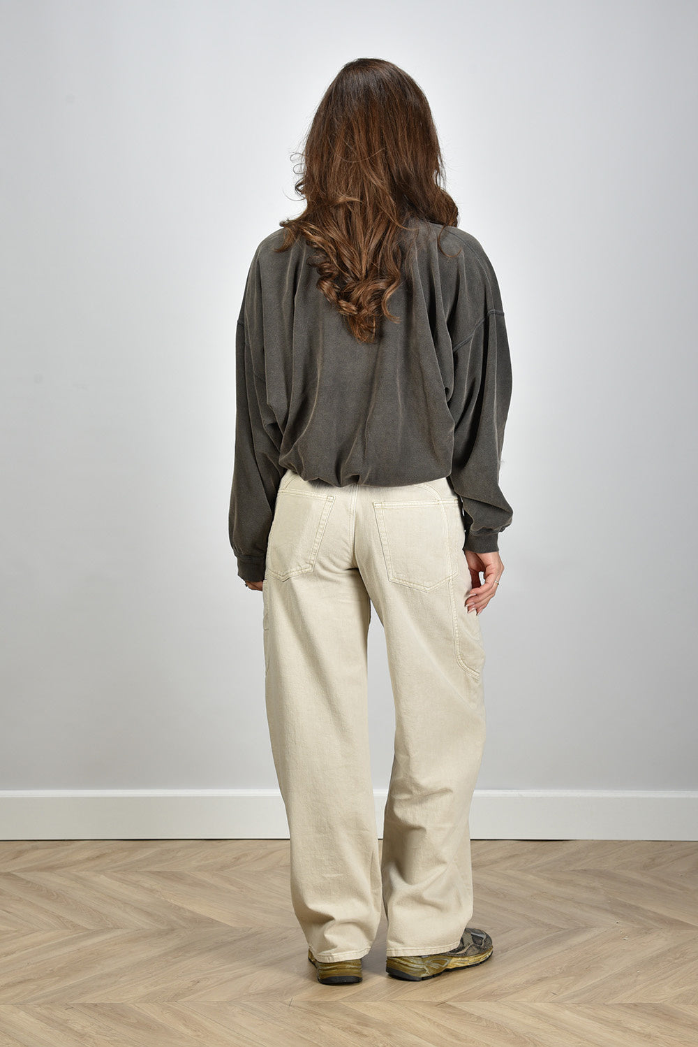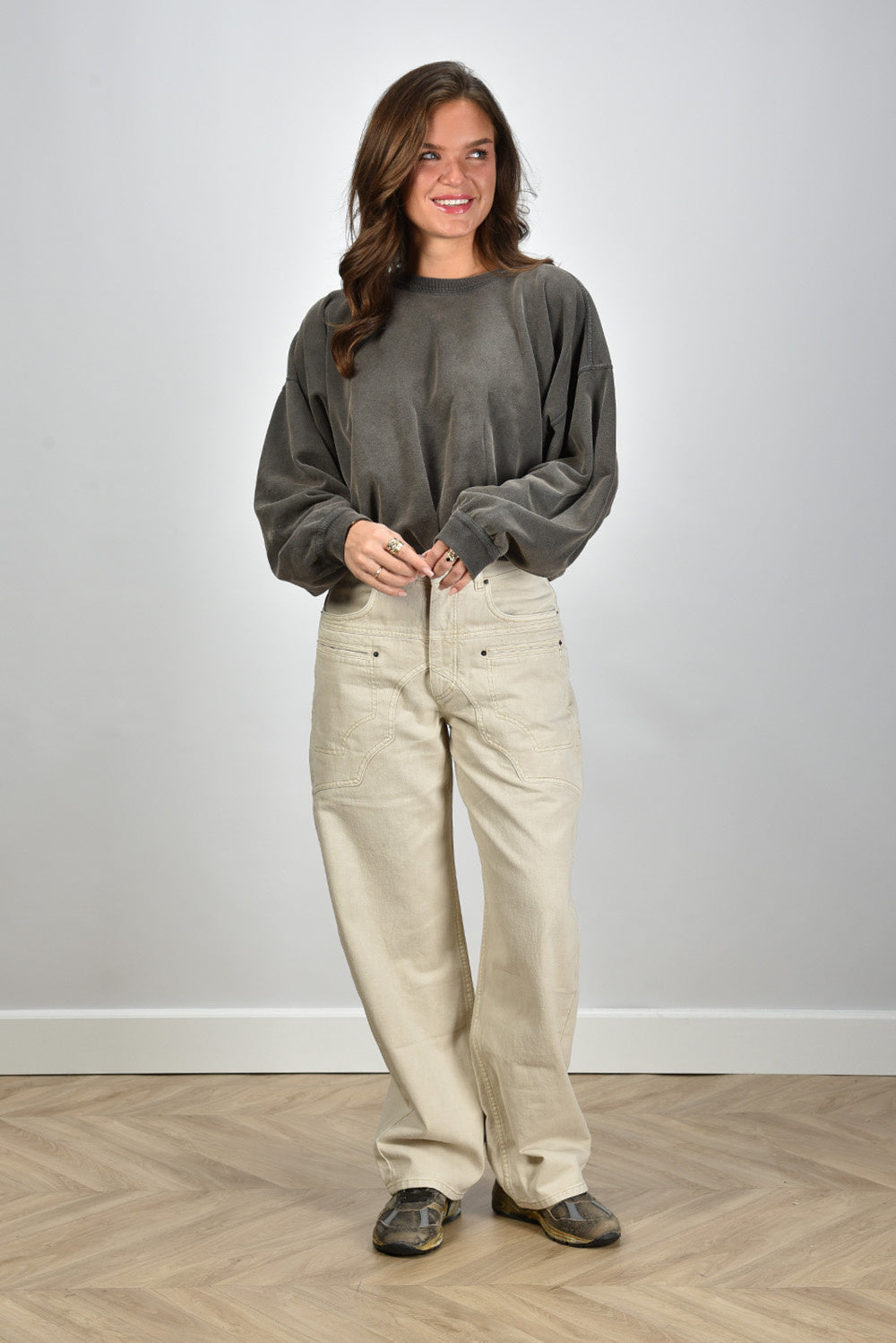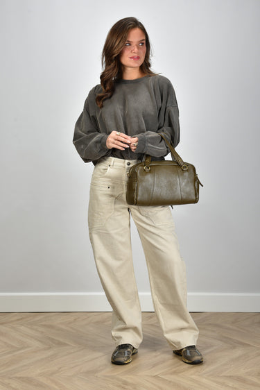 Ons model Lise is 1,73m en Lise heeft maat 38/M/28. Dit product heeft een oversized pasvorm.