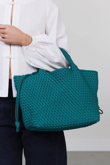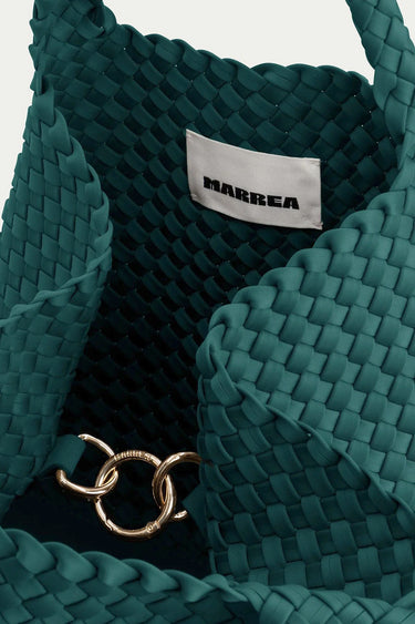 De Marrea shopper Medium tyrhennian sea trekt de aandacht door het handgevlochten neopreen in een diepe turquoise tint. Het royale formaat biedt ruimte voor je dagelijkse spullen, of juist voor een dag aan zee. De zachte satijntint in het vlechtpatroon geeft de tas een subtiele glans. Door het gebruik van neopreen is de shopper licht, sterk en vormvast. Hij voelt soepel aan maar behoudt zijn vorm, ook wanneer hij goed gevuld is. Binnenin vind je een praktische stofzak van 100% gerecycled nylon. Marrea, het Amsterdamse label van Michelle en Istra, haalt inspiratie uit het strand en de zee. Hun tassen zijn gemaakt met oog voor handwerk en comfort, en hebben die ontspannen elegantie die je overal mee naartoe neemt. Combineer de shopper Medium tyrhennian sea met de Marrea shopper Medium ice ice baby voor een frisse set met contrast.