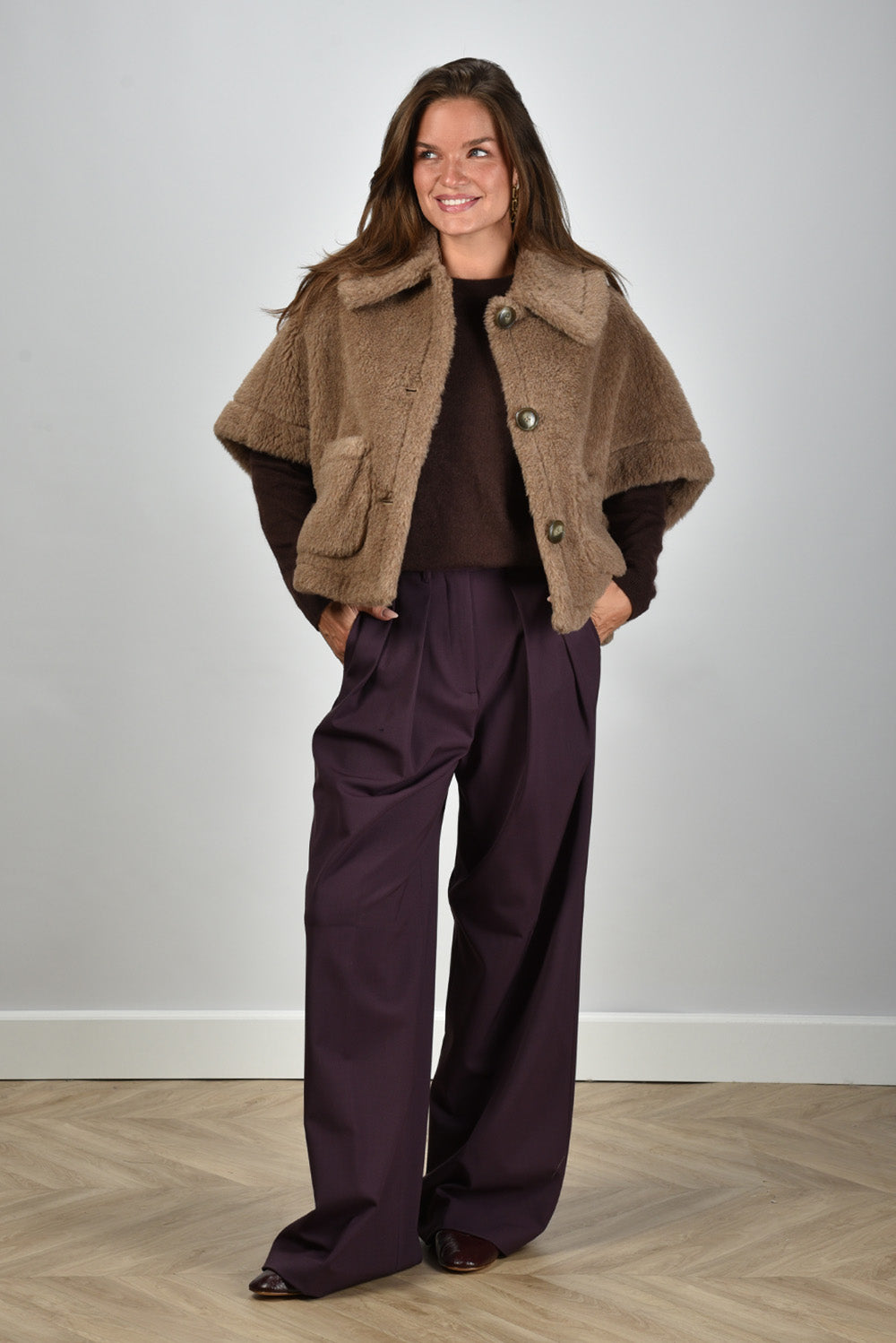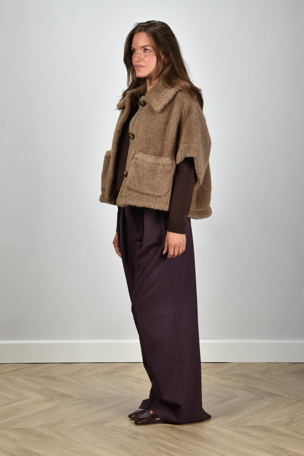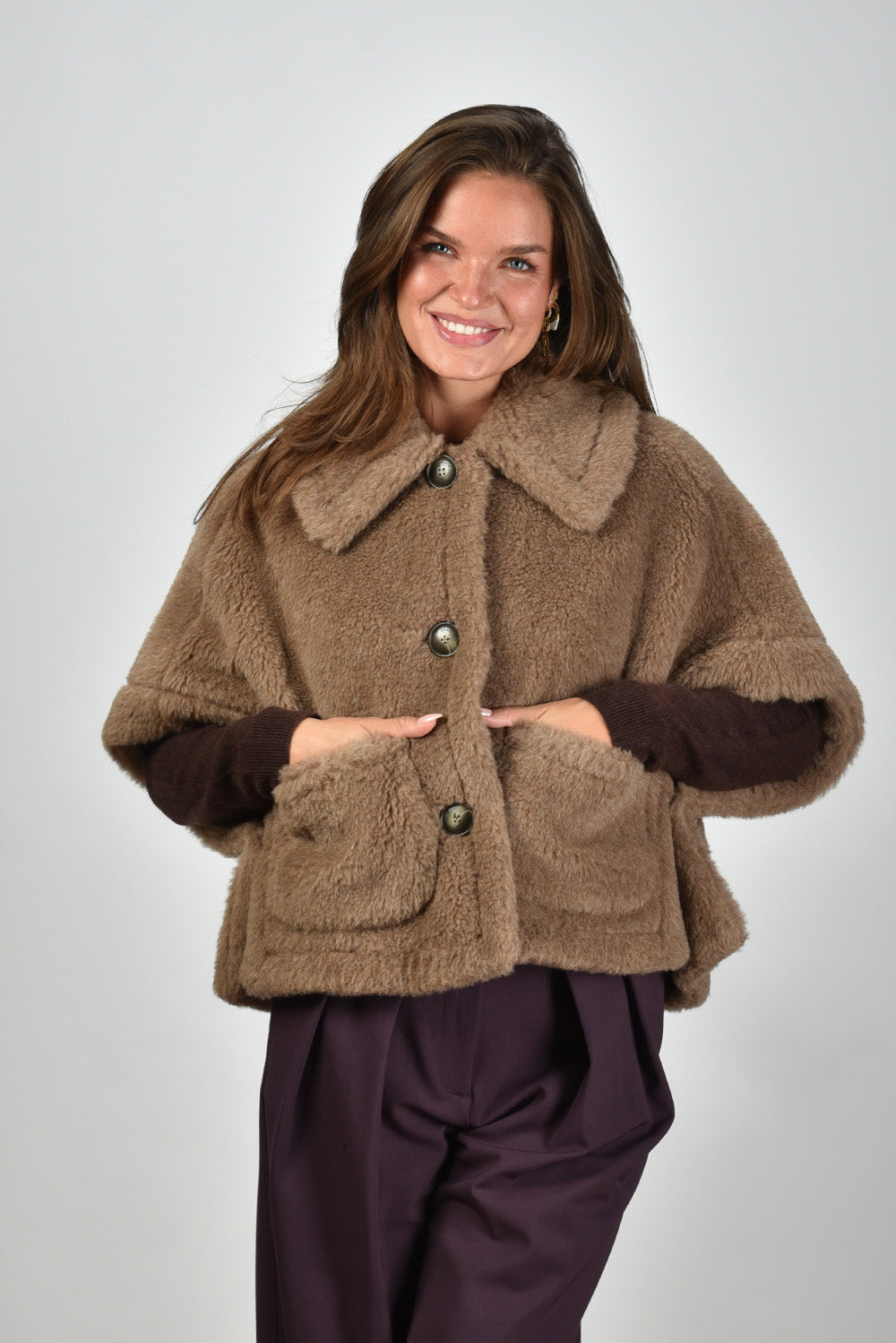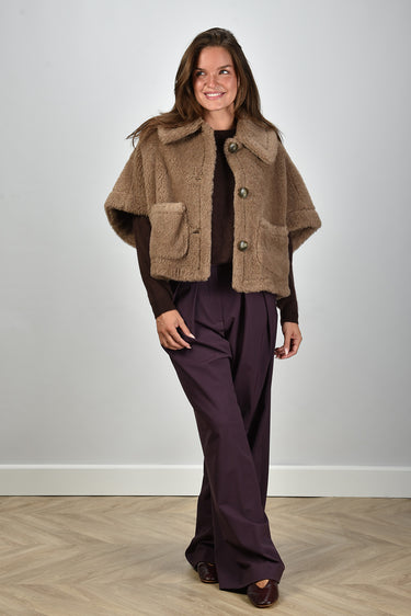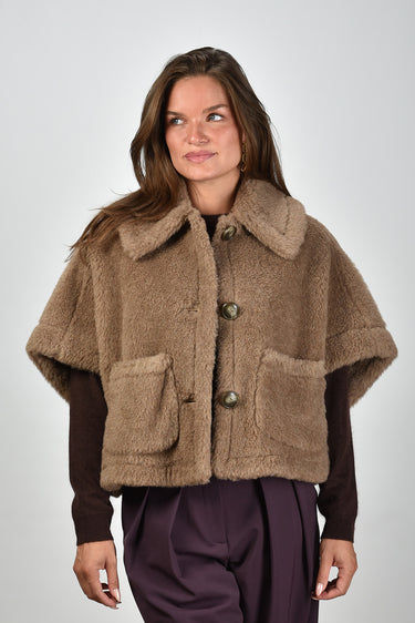Max Mara gilet 005 teddy met knoopsluiting bronze