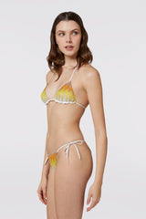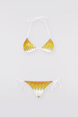 De Missoni bikini MC22SP00-BR00JJ white/yellow/ochre is een prachtige tweedelige set van het Italiaanse modehuis Missoni. De bikini bestaat uit een klassieke triangel-top en een bijpassende bikinibroek. Het ontwerp van de bikini is zeer stijlvol en trendy. De stof is wit van kleur en heeft een subtiel patroon van gele en okerkleurige strepen, wat een mooie en levendige uitstraling geeft. De stof is gemaakt van een zachte en comfortabele blend van polyamide en elastane.De triangel-top heeft verstelbare bandjes en uitneembare cups, waardoor je de pasvorm naar wens kunt aanpassen en extra ondersteuning kunt toevoegen. De bikinibroek heeft een gematigde dekking aan de achterkant en is volledig gevoerd voor extra comfort.De Missoni bikini MC22SP00-BR00JJ white/yellow/ochre is een perfecte keuze voor een dagje aan het strand of aan het zwembad. Het is een trendy ontwerp dat zeker de aandacht zal trekken en je een modieuze uitstraling geeft.