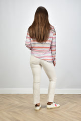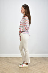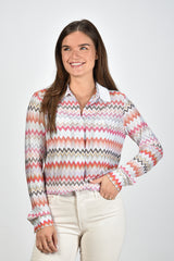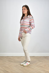 De Missoni blouse DS24SJ05-BR00UM is een prachtige blouse met kleurrijke accenten. Je kunt hem bijvoorbeeld dragen met een zwarte of cremekleurige broek of een rok voor een chique look, of met jeans voor een meer casual uitstraling. Het kleurrijke patroon voegt een speels en levendig element toe aan de blouse. Deze blouse valt normaal. Model is 1,73m, heeft maat M en draagt maat IT42 (M).