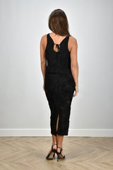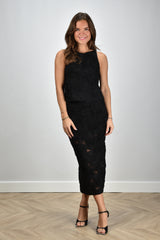 Zie hier de Rotate rok Flower Mesh Pencil zwart, een verfijnde keuze voor elke gelegenheid. Gemaakt van 100% polyester en ontworpen met een normale pasvorm. Lise draagt maat 38/M/28 bij een lengte van 1,73m. Wasbaar op 30°. Artikelnummer: 113615100