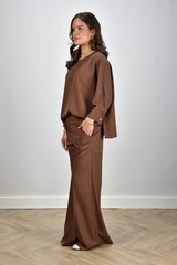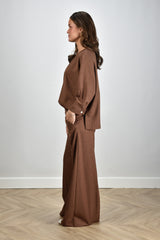 Zie hier de Sea Me Happy broek Super Woody in cacao. Deze elegante broek, vervaardigd uit 100% polyester, biedt een normale pasvorm en is ontworpen voor veelzijdige stijlopties. Handwas aanbevolen om de kwaliteit te behouden. Model Lise draagt maat M bij een lengte van 1,73m. Artikelnummer: SupWooPanSumLus-230-Cacao.