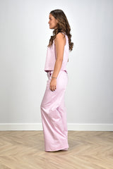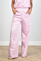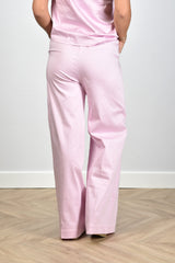 Comfortabele broek van het merk Sea Me Happy, model Woody Paperstretch, in de kleur rose. De broek is veelzijdig en kan zowel casual als gekleed worden gedragen. Dit komt door de wijde, rechte broekspijpen en de elastische tailleband. Combineer de Sea Me Happy broek met een blouse en hakken voor een chique look, of draag hem met een t-shirt en sneakers voor een meer ontspannen en trendy uitstraling. Een perfecte toevoeging aan je dagelijkse garderobe voor een trendy en moeiteloos chique look. Model is 1,73 m, heeft maat M en draagt maat 2.