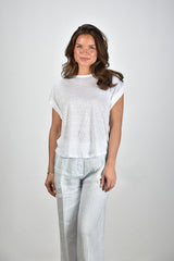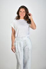 Zie hier het Semicouture t-shirt in Bianco, vervaardigd uit 100% linnen voor een luxe uitstraling. Dit kledingstuk heeft een normale pasvorm en is ideaal voor diverse gelegenheden. Model Lise draagt maat M bij een lengte van 1,73m. Artikelnummer: S5SJ11-A01-0-Bianco.