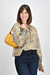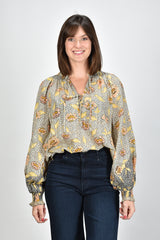 Mooie blouse van het merk Ulla Johnson, model Kaitlyn, in de kleur chrystanthemum. De geprinte blouse is voorzien van lange mouwen en een v-hals. Combineer de blouse met een mooie jeans van Mother voor een casual chique look! Stijl de look af met de H-Bag van Hogan in het geel. Deze blouse valt normaal. Model is 1,75m, is maat 36 en draagt maat 36.