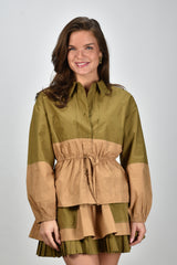 Zie hier het Ulla Johnson jack Arlo in Sahara Colorblock. Dit elegante kledingstuk is vervaardigd uit 100% katoen en biedt een normale pasvorm voor optimaal comfort. Perfect voor diverse gelegenheden, met zorg te wassen op 30°. Artikelnummer: SP250500