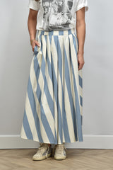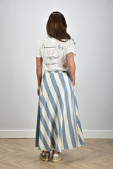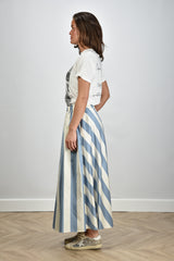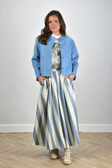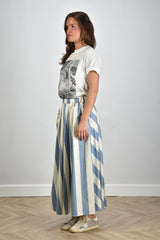 Zie hier de Weekend Max Mara rok blauw, een verfijnd model met avio stripe. Gemaakt van 88% katoen en 12% zijde voor ultiem comfort. Dit product heeft een normale pasvorm en is perfect te combineren voor diverse gelegenheden. Model Lise draagt maat M bij een lengte van 1,73m. Artikelnummer: VIDIM-002.