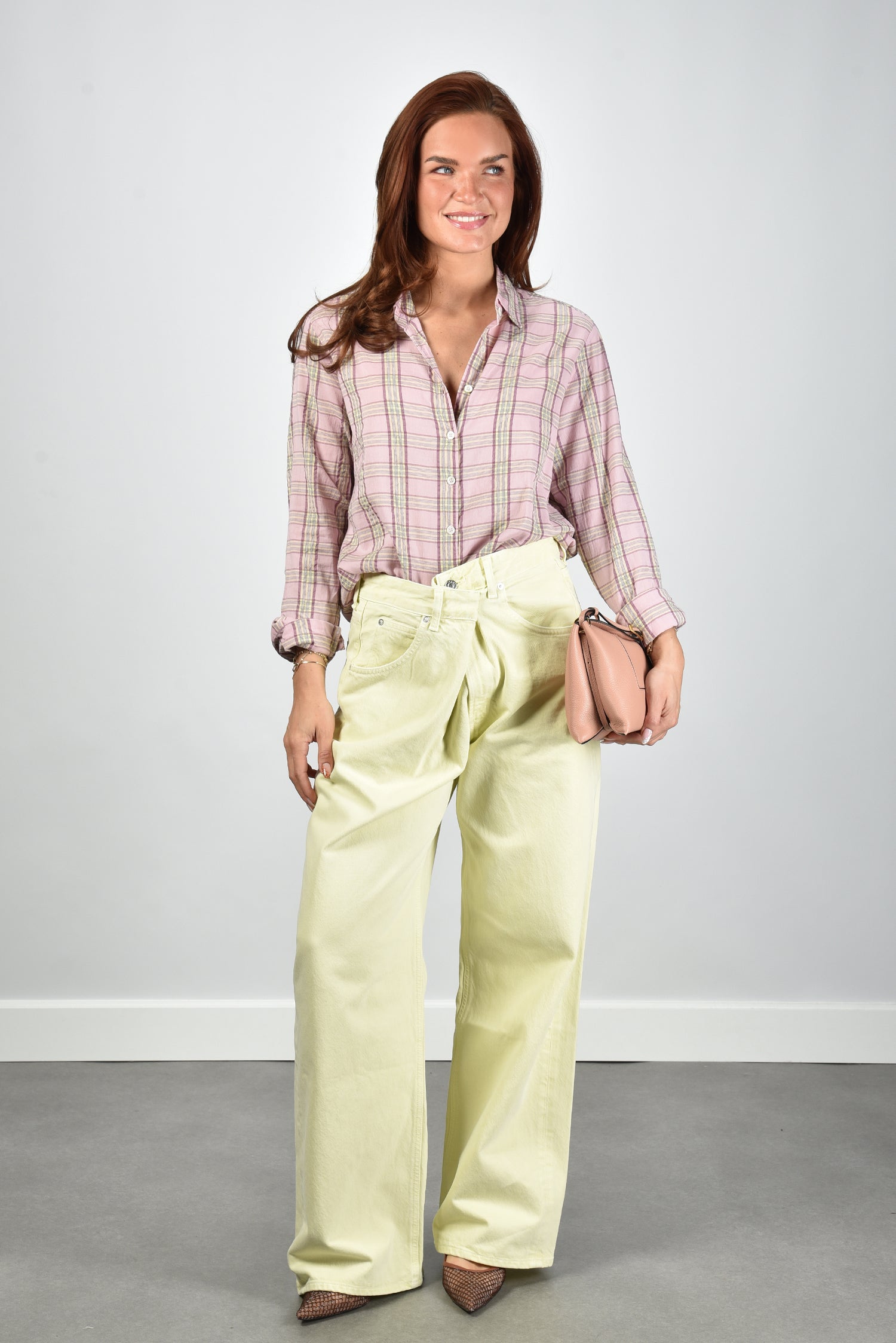 De blouse Bowie van Xirena is zo’n stuk dat direct in het oog springt door zijn frisse ruitjes in zacht roze, de kleur die het merk roselark noemt. Gemaakt van 100% katoen voelt hij licht en prettig aan op de huid. De kraag en knoopsluiting geven het ontwerp een verzorgde uitstraling, terwijl de losse snit zorgt voor een ontspannen silhouet. Deze blouse valt normaal op maat en draagt fijn, of je hem nu los draagt of deels instopt in je broek. Mooi te combineren met bijvoorbeeld de Wandler crossbody Penelope Slouch in apricot crust voor een speelse kleurnuance. Xirena staat bekend om haar luchtige katoenen ontwerpen waarin het Californische gevoel van vrijheid en stijl subtiel samenkomt.