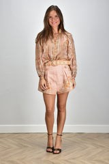 Zimmermann short Acacia Tuck met zelfbedekte afneembare riem roze